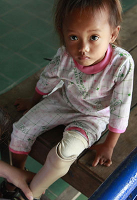 Kanha,13 ans, victime d'une mine au Cambodge, joue avec ses amis. | © Eric Martin | Figaro Magazine | Handicap International